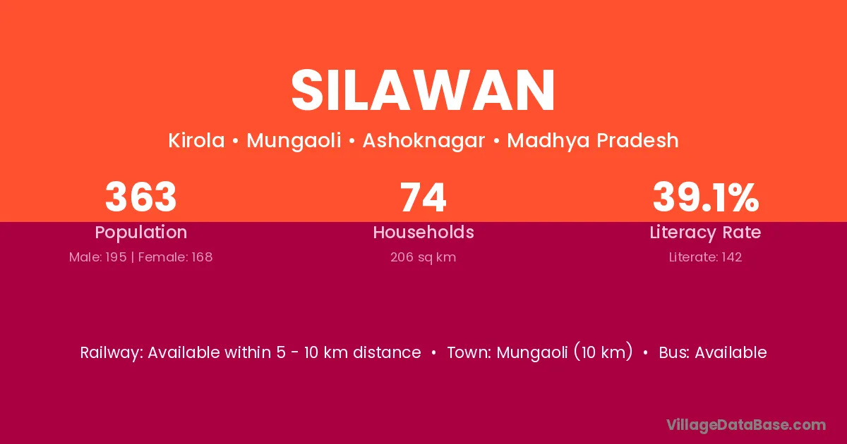 Mungaoli (10 km) is the nearest town to Silawan village for major economic activities and is located approximately 10 km away.
