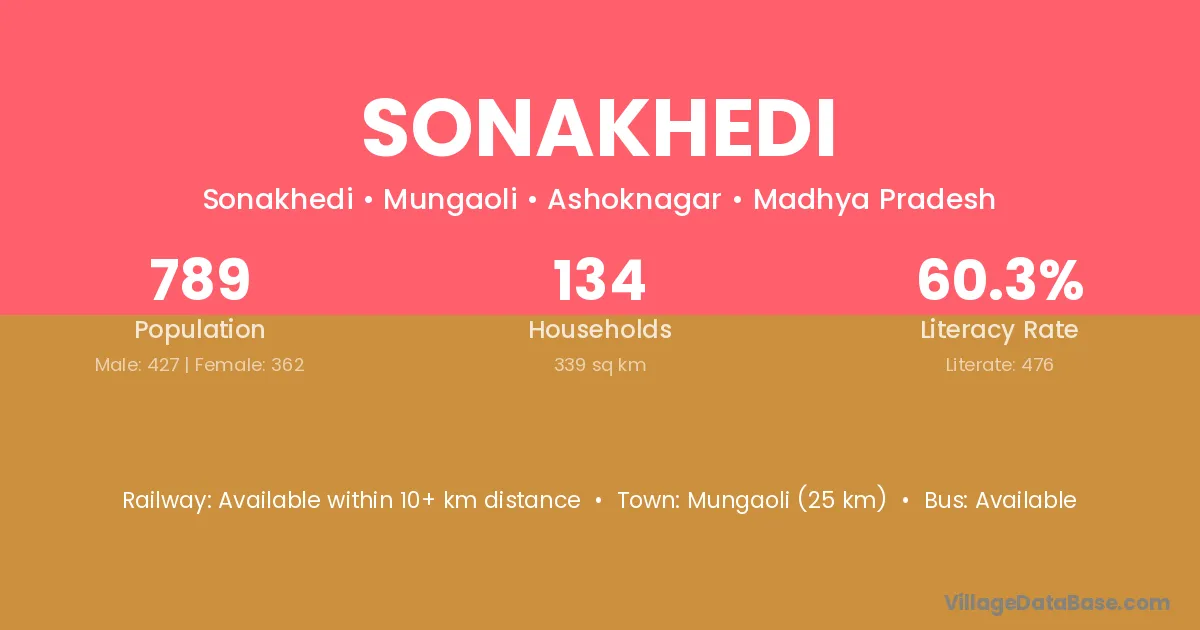 Mungaoli (25 km) is the nearest town to Sonakhedi village for major economic activities and is located approximately 25 km away.