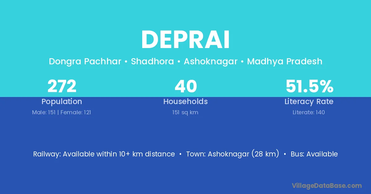 Ashoknagar (28 km) is the nearest town to Deprai village for major economic activities and is located approximately 28 km away.