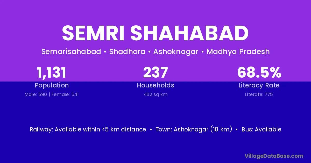 Ashoknagar (18 km) is the nearest town to Semri Shahabad village for major economic activities and is located approximately 18 km away.