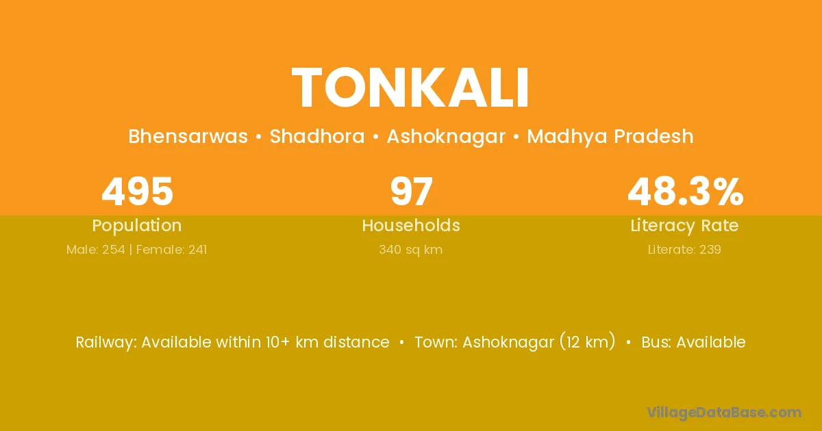 Ashoknagar (12 km) is the nearest town to Tonkali village for major economic activities and is located approximately 12 km away.