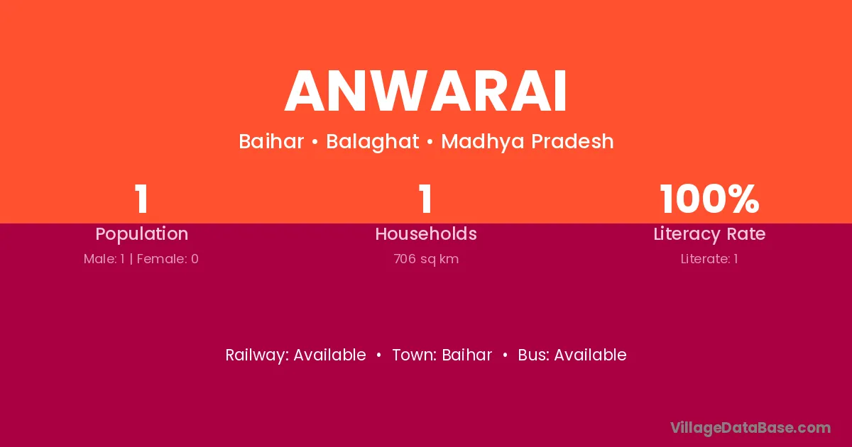 Anwarai village has a total population of 1 people, of which 1 are males and 0 are females.