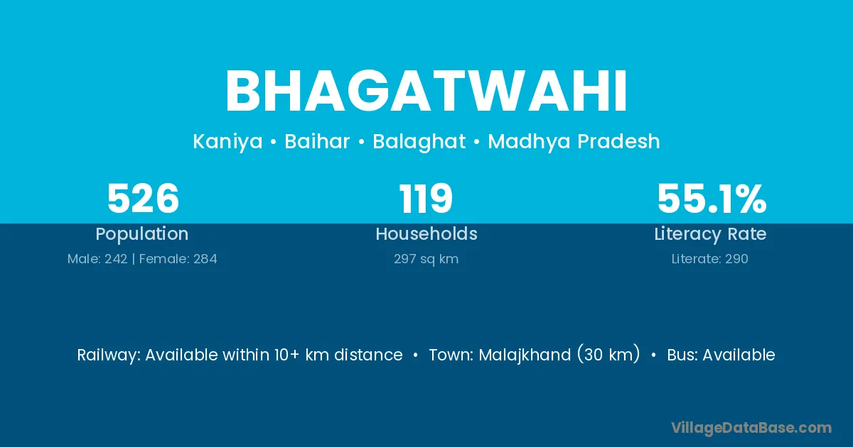Bhagatwahi village has a total population of 526 people, of which 242 are males and 284 are females.