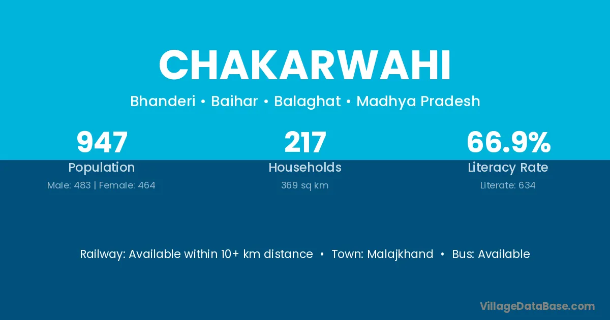 Chakarwahi village has a total population of 947 people, of which 483 are males and 464 are females.