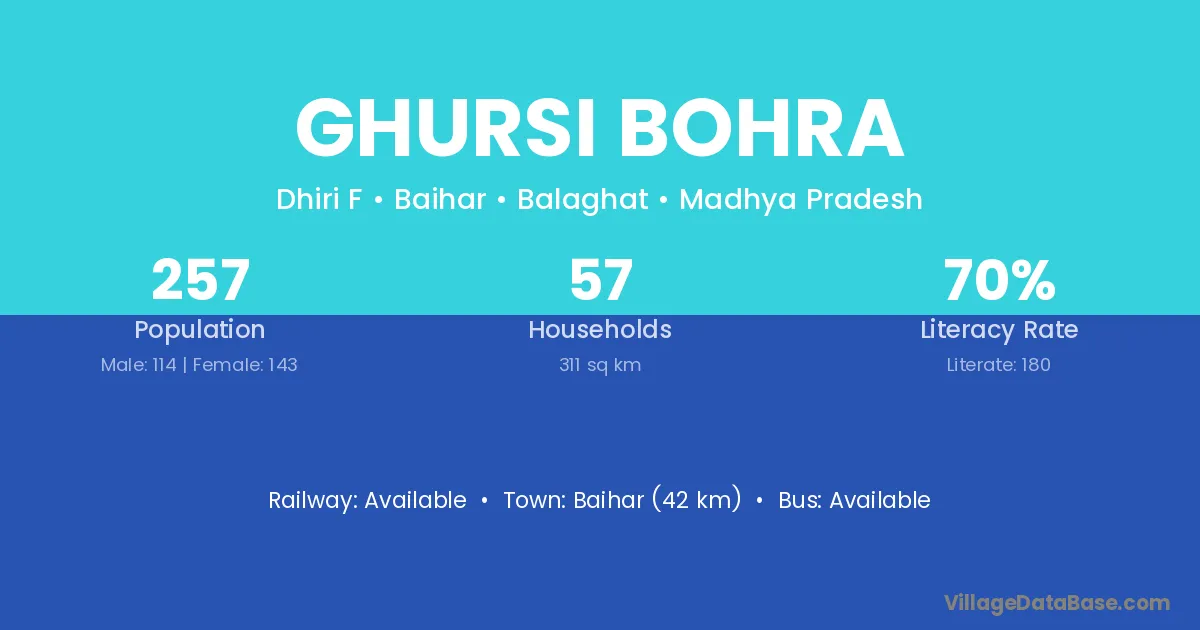 Baihar (42 km) is the nearest town to Ghursi Bohra village for major economic activities and is located approximately 42 km away.