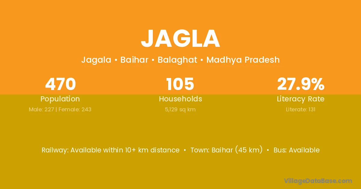 Baihar (45 km) is the nearest town to Jagla village for major economic activities and is located approximately 45 km away.