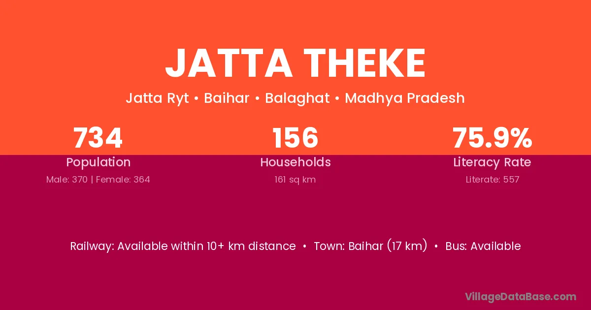 Jatta Theke village has a total population of 734 people, of which 370 are males and 364 are females.