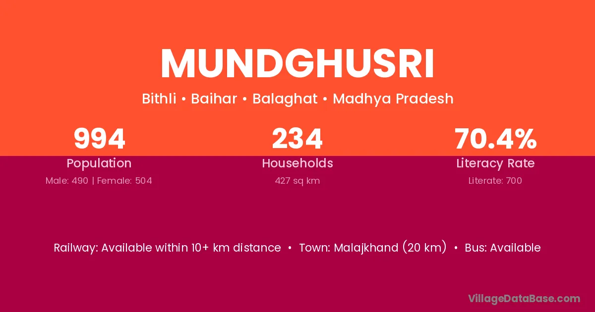 Malajkhand (20 km) is the nearest town to Mundghusri village for major economic activities and is located approximately 20 km away.