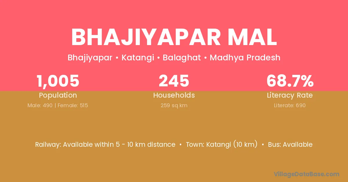 Katangi (10 km) is the nearest town to Bhajiyapar Mal village for major economic activities and is located approximately 10 km away.
