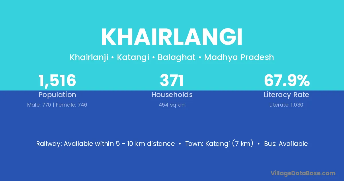 Katangi (7 km) is the nearest town to Khairlangi village for major economic activities and is located approximately 7 km away.