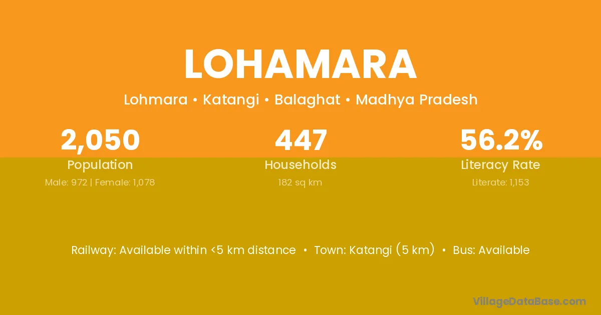 Katangi (5 km) is the nearest town to Lohamara village for major economic activities and is located approximately 5 km away.