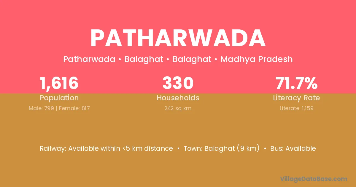 Katangi (4 km) is the nearest town to Patharwada village for major economic activities and is located approximately 4 km away.