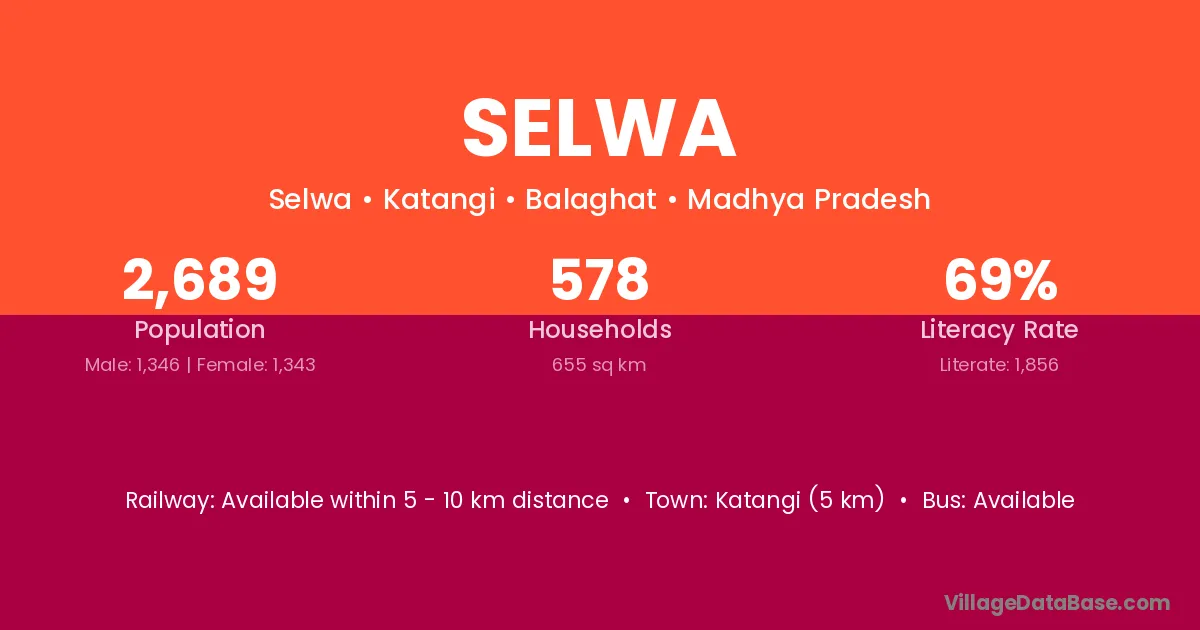Katangi (5 km) is the nearest town to Selwa village for major economic activities and is located approximately 5 km away.