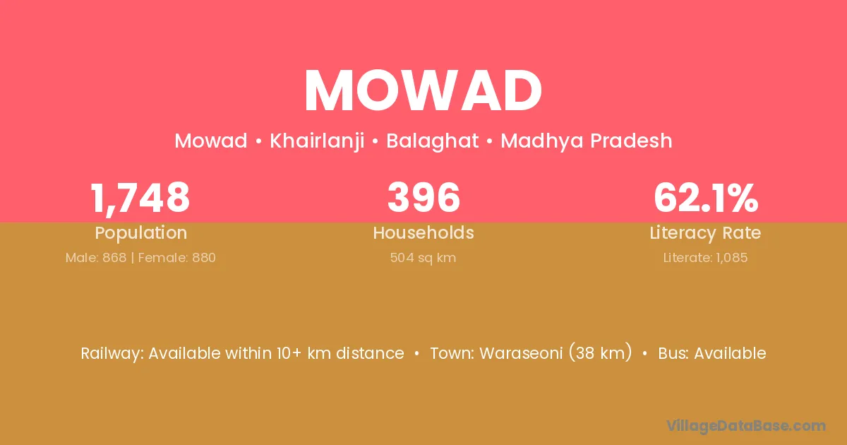 Waraseoni (38 km) is the nearest town to Mowad village for major economic activities and is located approximately 38 km away.