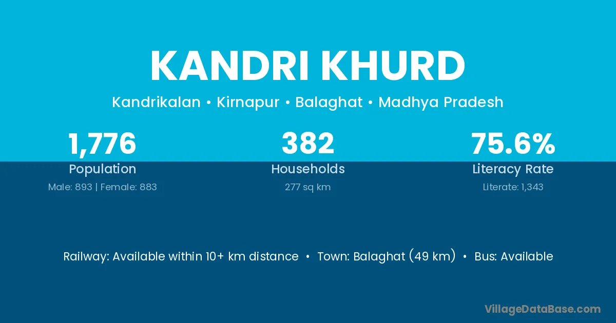Kandri Khurd village has a total population of 1,776 people, of which 893 are males and 883 are females.