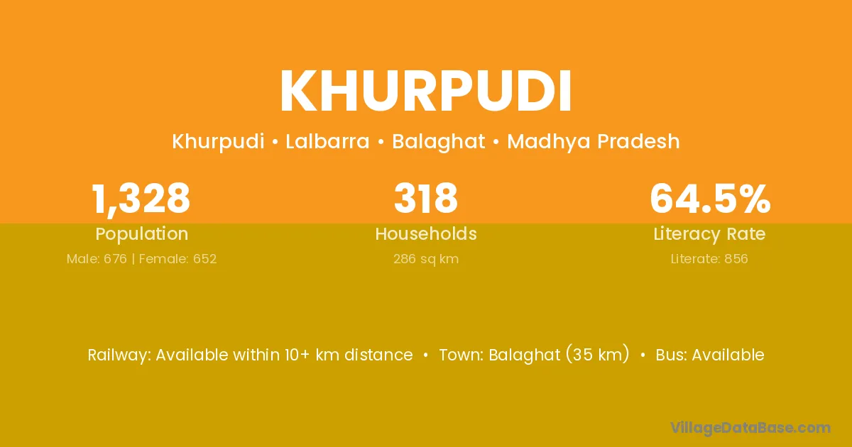 Balaghat (35 km) is the nearest town to Khurpudi village for major economic activities and is located approximately 35 km away.