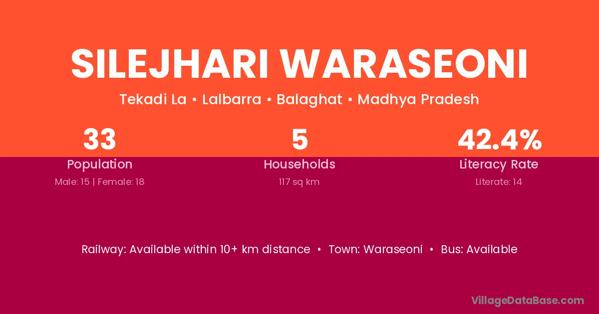 Silejhari Waraseoni village has a total population of 33 people, of which 15 are males and 18 are females.