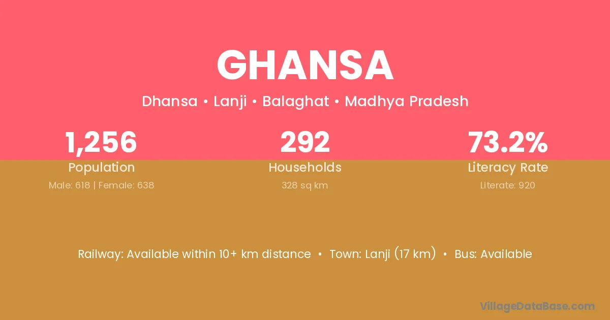 Lanji (17 km) is the nearest town to Ghansa village for major economic activities and is located approximately 17 km away.