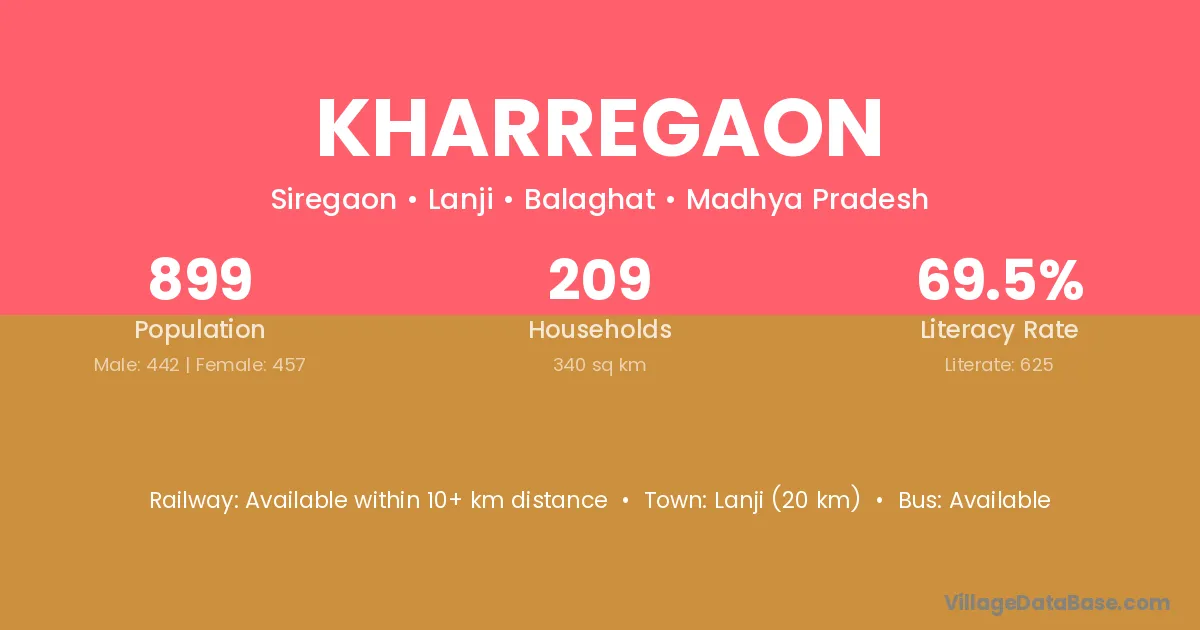 Lanji (20 km) is the nearest town to Kharregaon village for major economic activities and is located approximately 20 km away.