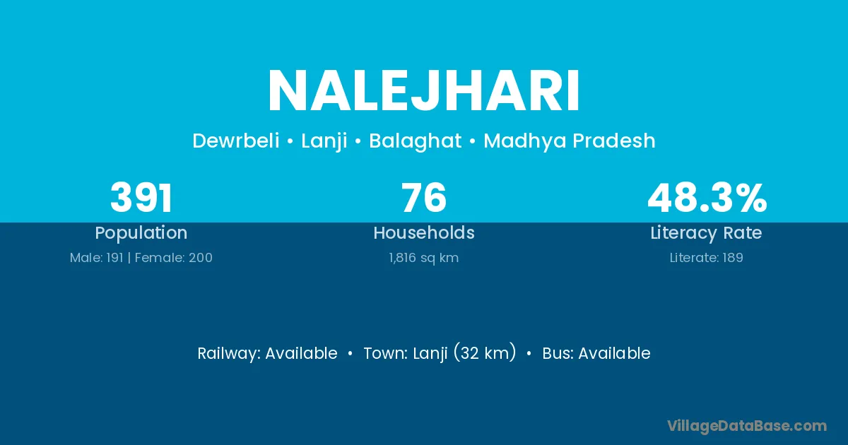 Lanji (32 km) is the nearest town to Nalejhari village for major economic activities and is located approximately 32 km away.