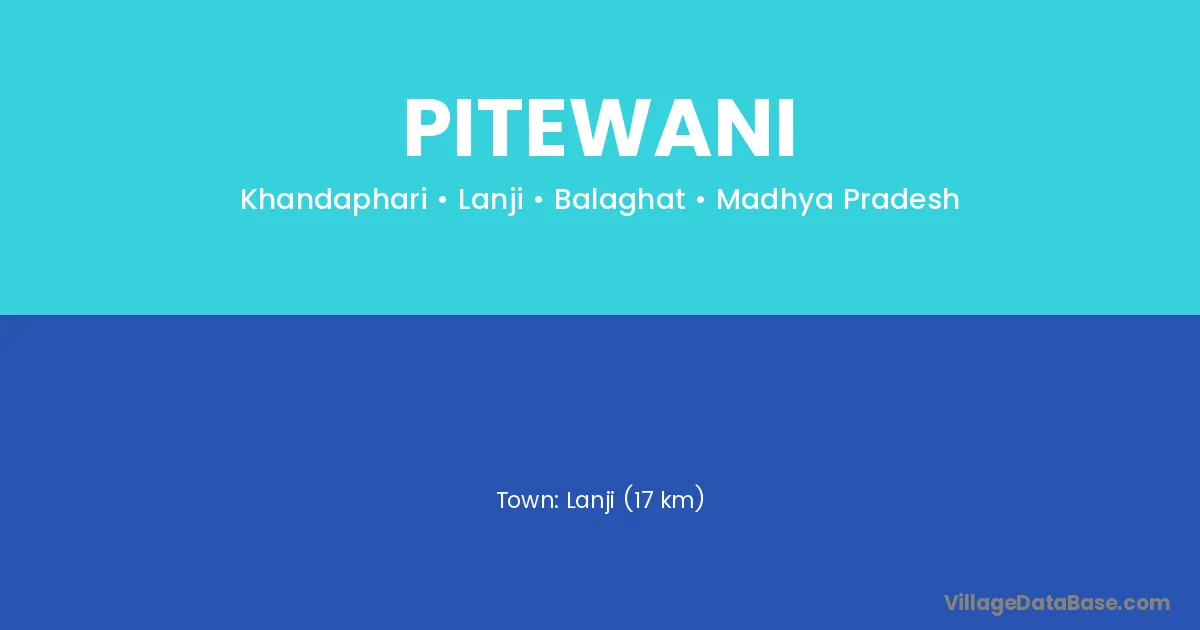 Lanji (17 km) is the nearest town to Pitewani village for major economic activities and is located approximately 17 km away.