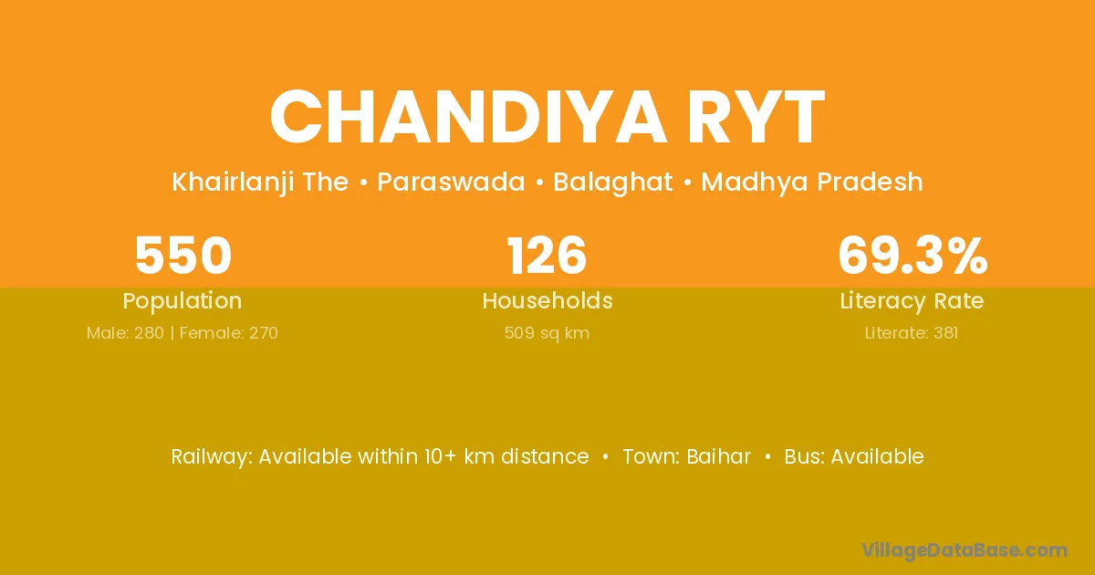 Chandiya Ryt village has a total population of 550 people, of which 280 are males and 270 are females.