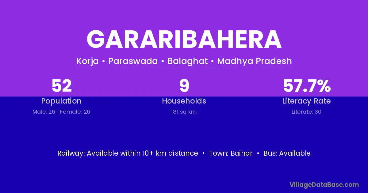 Gararibahera village is located in the Paraswada Tehsil of the Balaghat district in Madhya Pradesh .