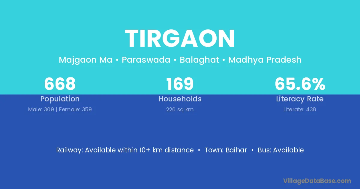 Baihar is the nearest town to Tirgaon village for major economic activities