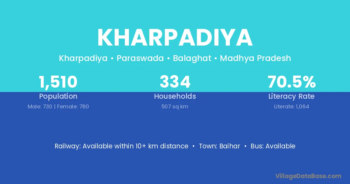 Katangi (16 km) is the nearest town to Kharpadiya village for major economic activities and is located approximately 16 km away.