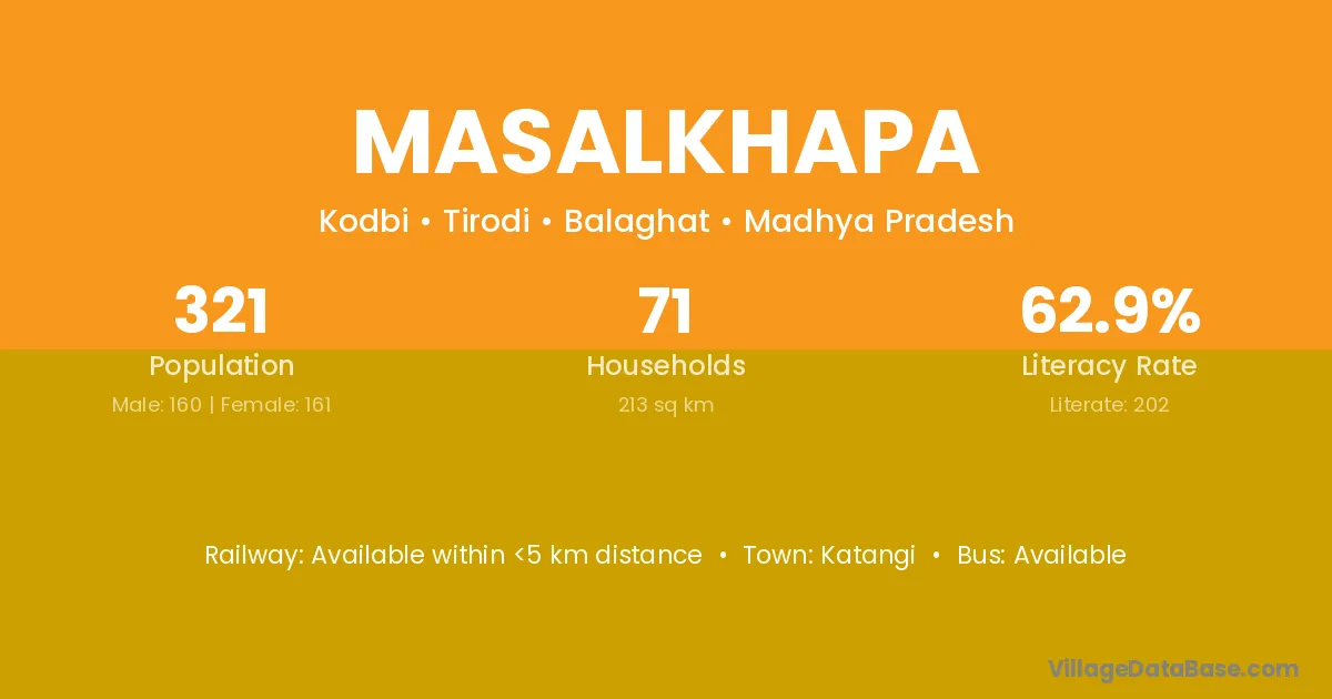 Katangi is the nearest town to Masalkhapa village for major economic activities