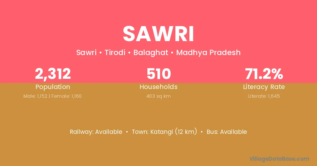 Katangi (12 km) is the nearest town to Sawri village for major economic activities and is located approximately 12 km away.
