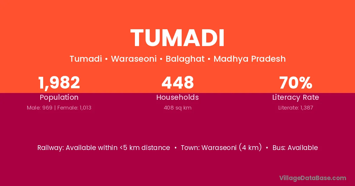 Waraseoni (4 km) is the nearest town to Tumadi village for major economic activities and is located approximately 4 km away.
