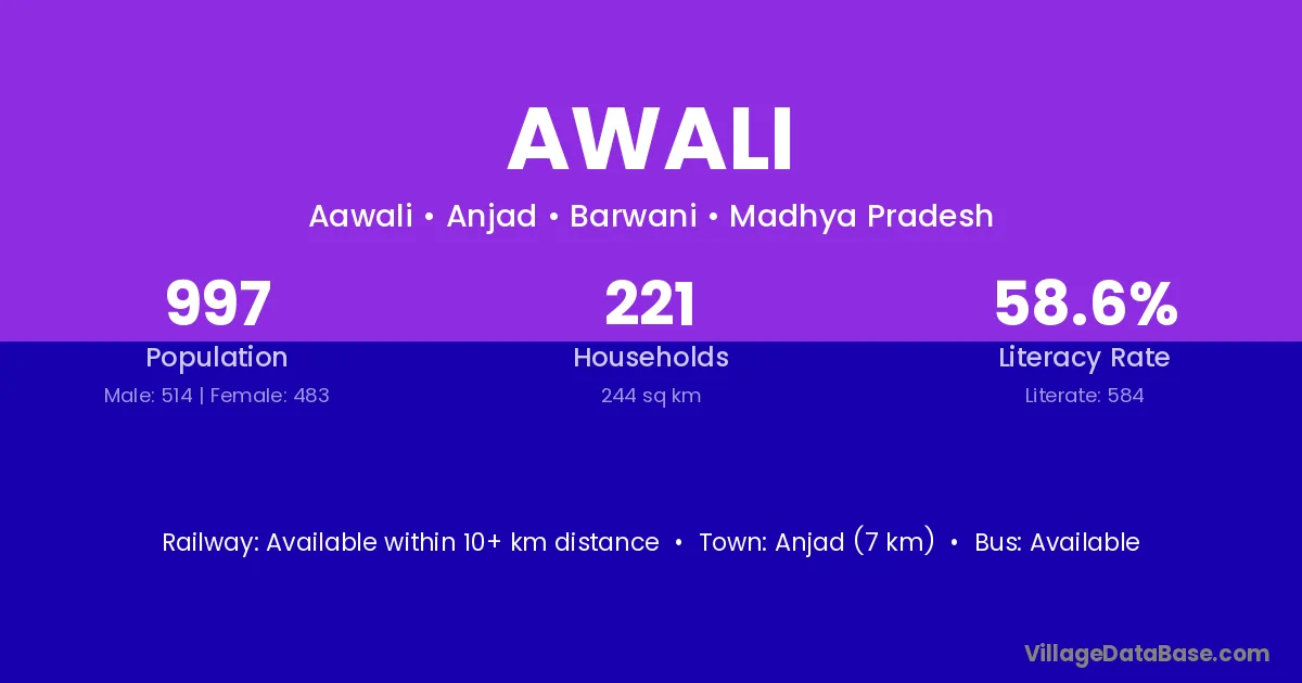 Anjad (7 km) is the nearest town to Awali village for major economic activities and is located approximately 7 km away.