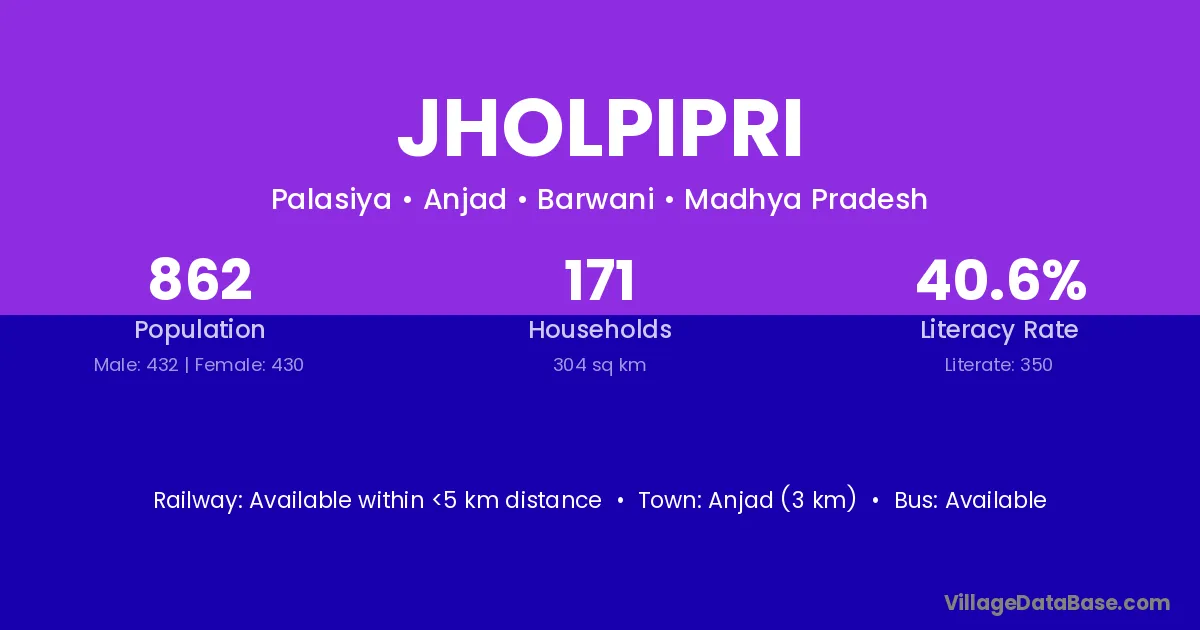 Anjad (3 km) is the nearest town to Jholpipri village for major economic activities and is located approximately 3 km away.