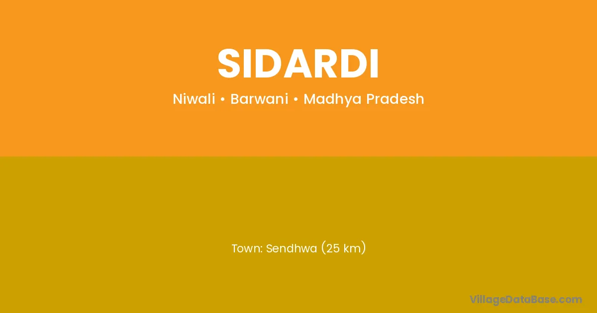 Sendhwa (25 km) is the nearest town to Sidardi village for major economic activities and is located approximately 25 km away.