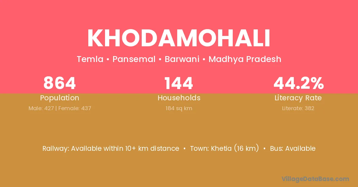Khetia (16 km) is the nearest town to Khodamohali village for major economic activities and is located approximately 16 km away.
