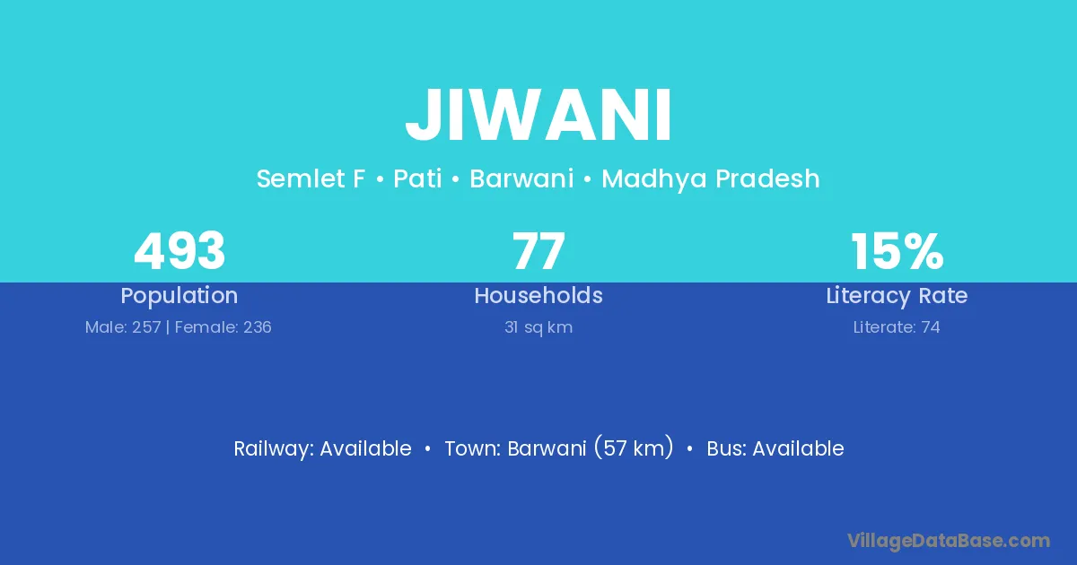 Barwani (57 km) is the nearest town to Jiwani village for major economic activities and is located approximately 57 km away.