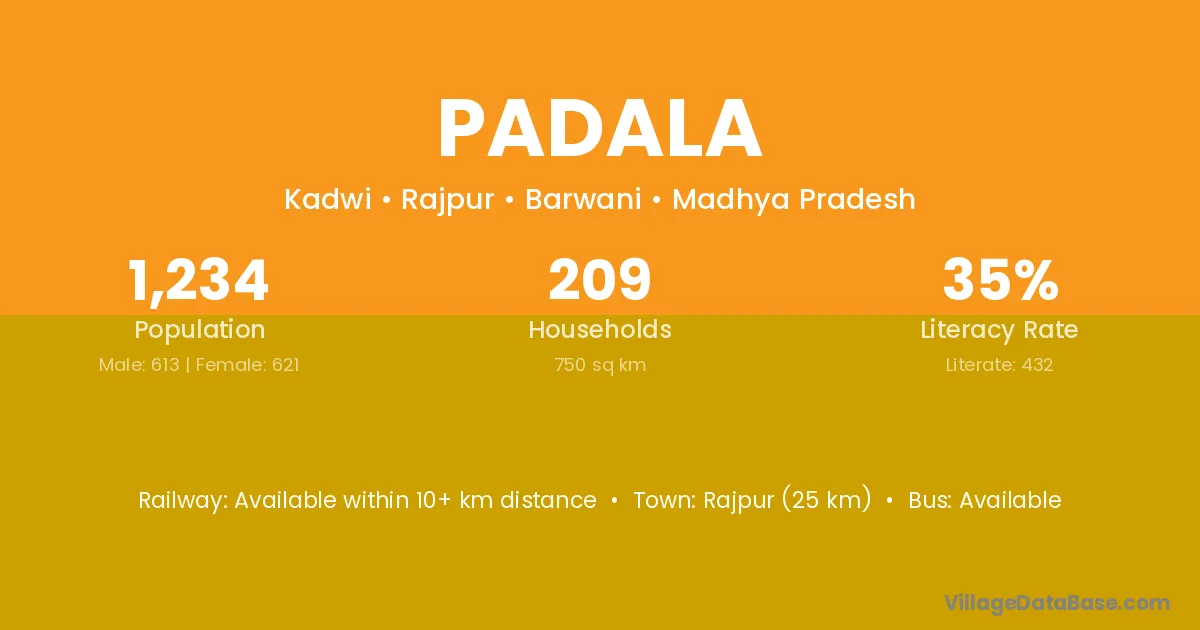 Rajpur (25 km) is the nearest town to Padala village for major economic activities and is located approximately 25 km away.