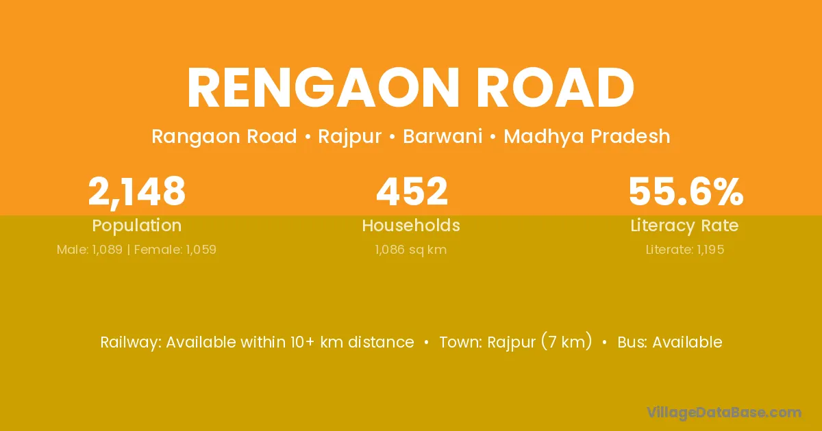 Rajpur (7 km) is the nearest town to Rengaon Road village for major economic activities and is located approximately 7 km away.
