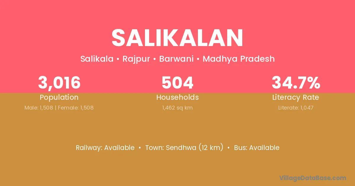 Sendhwa (12 km) is the nearest town to Salikalan village for major economic activities and is located approximately 12 km away.