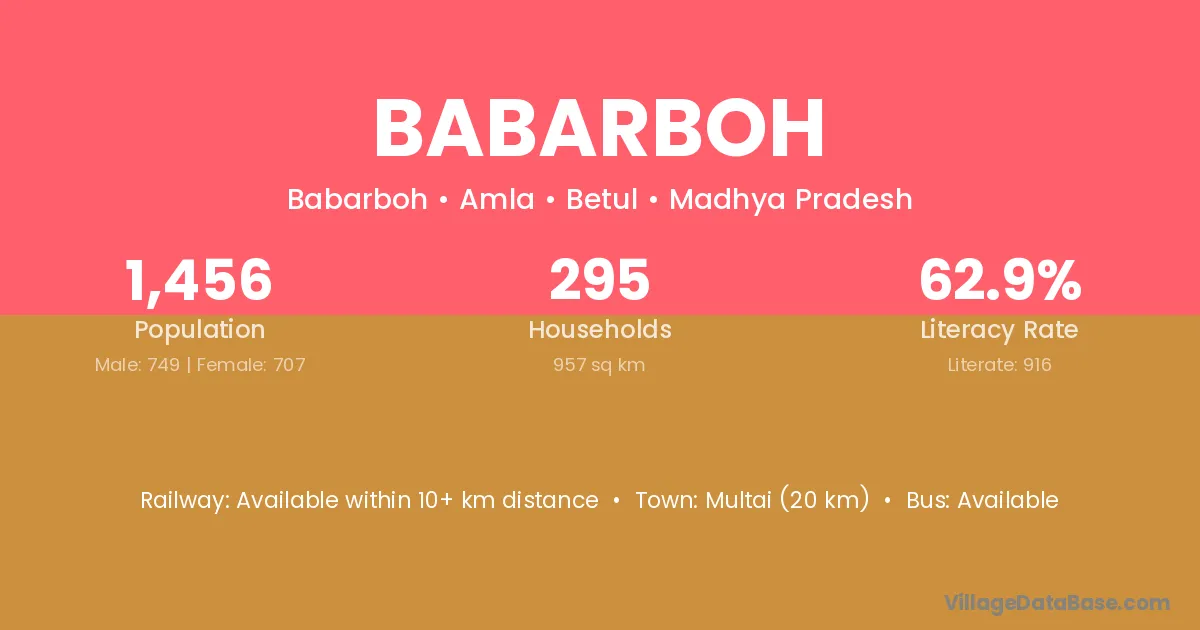 Multai (20 km) is the nearest town to Babarboh village for major economic activities and is located approximately 20 km away.