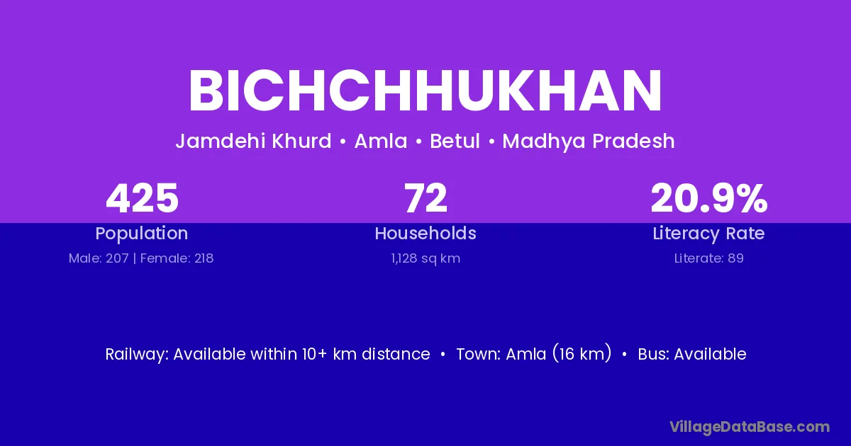 Amla (16 km) is the nearest town to Bichchhukhan village for major economic activities and is located approximately 16 km away.