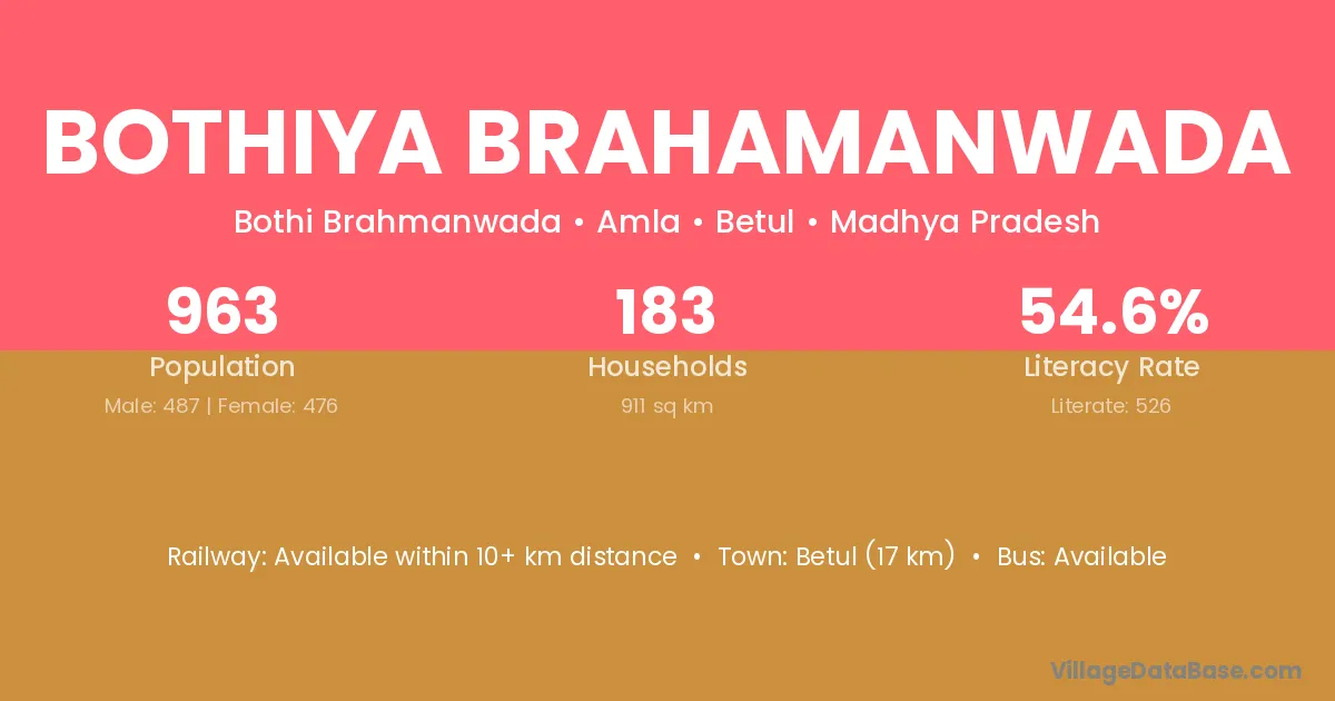 Bothiya Brahamanwada village has a total population of 963 people, of which 487 are males and 476 are females.