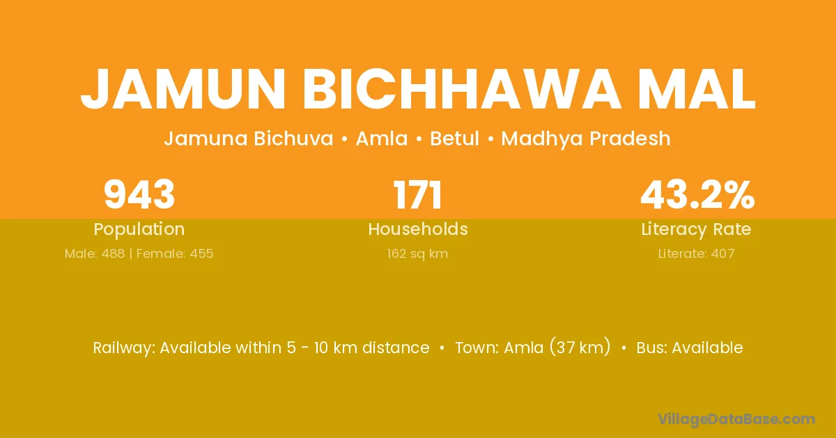 Amla (37 km) is the nearest town to Jamun Bichhawa Mal village for major economic activities and is located approximately 37 km away.