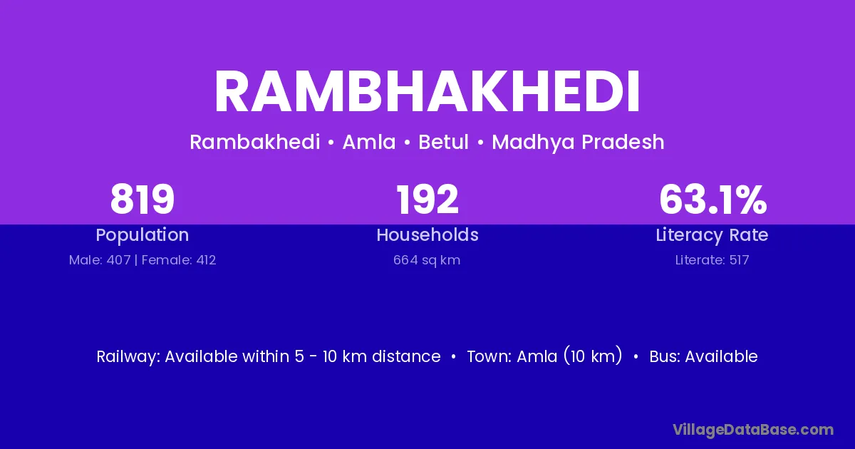 Amla (10 km) is the nearest town to Rambhakhedi village for major economic activities and is located approximately 10 km away.
