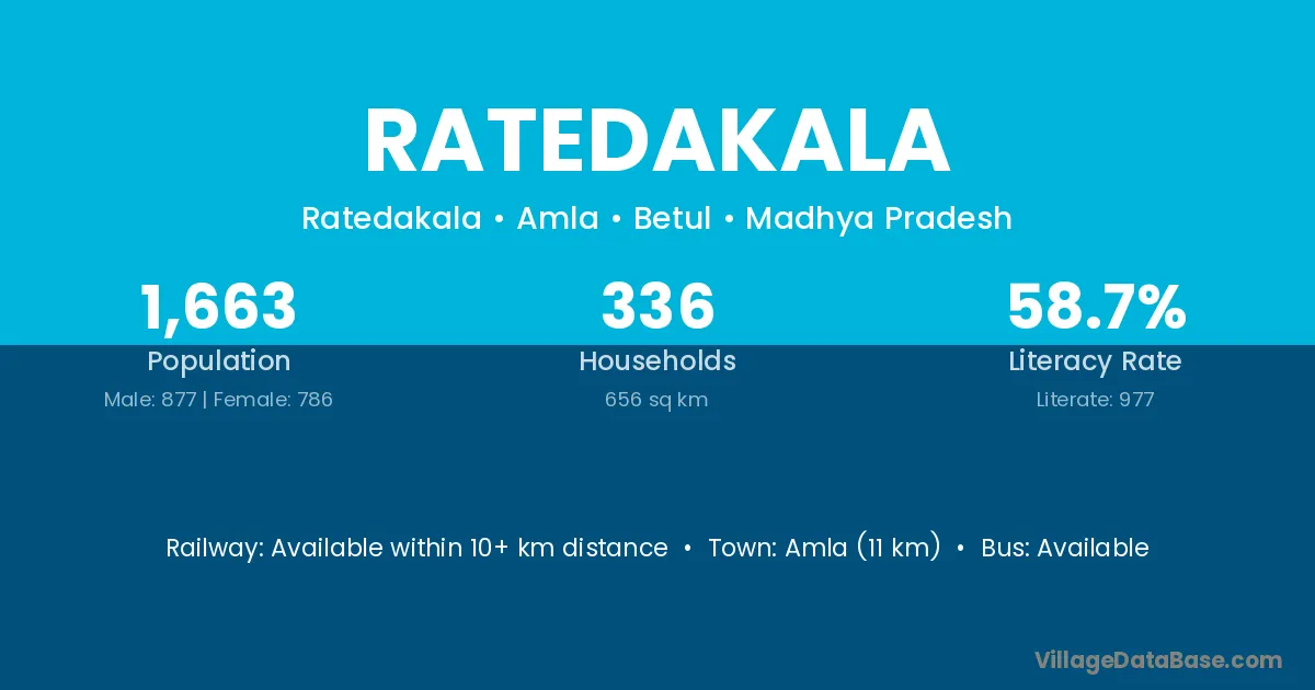 Amla (11 km) is the nearest town to Ratedakala village for major economic activities and is located approximately 11 km away.