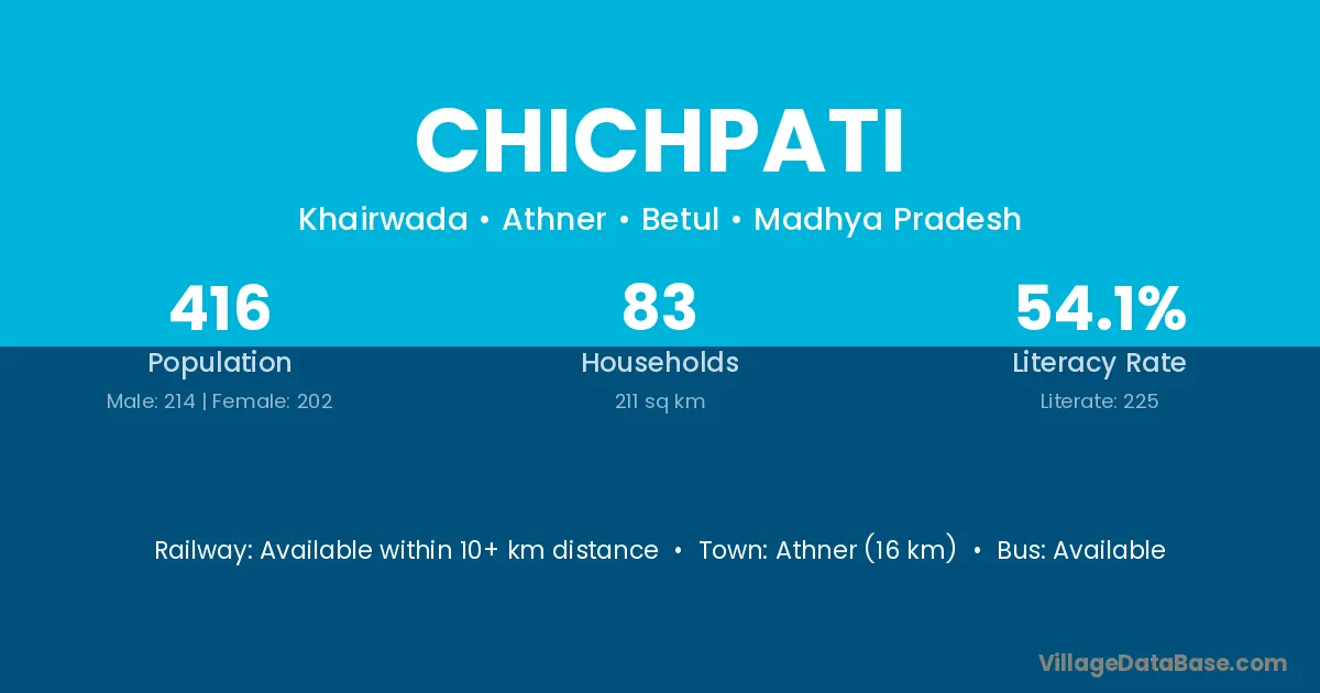 Athner (16 km) is the nearest town to Chichpati village for major economic activities and is located approximately 16 km away.