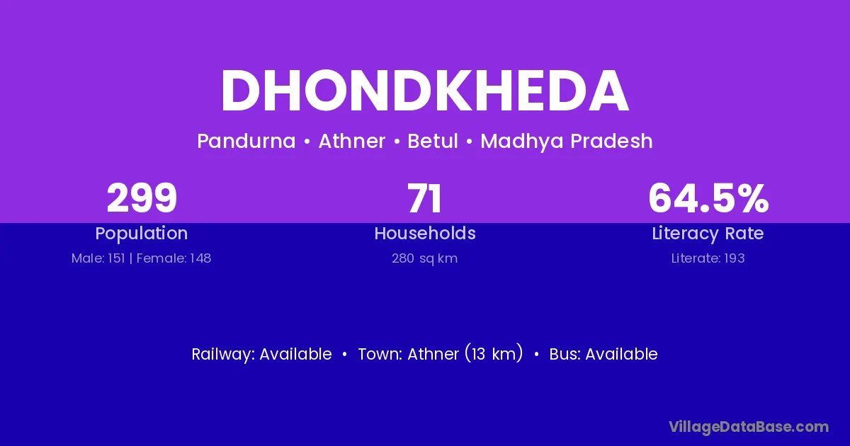 Athner (13 km) is the nearest town to Dhondkheda village for major economic activities and is located approximately 13 km away.
