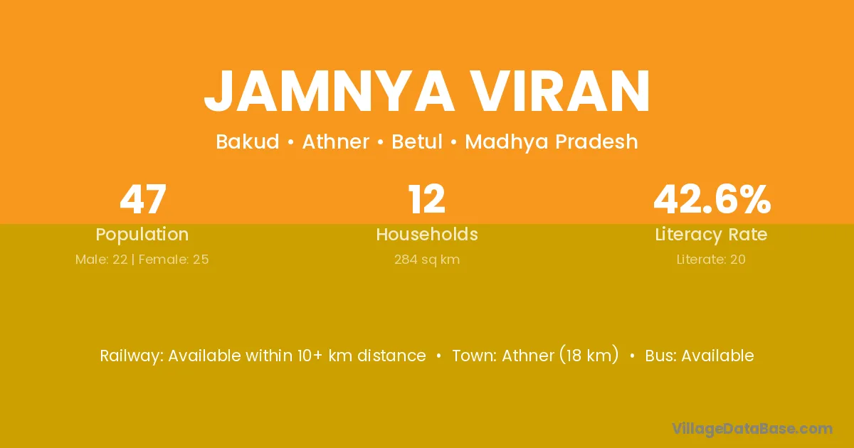 Athner (18 km) is the nearest town to Jamnya Viran village for major economic activities and is located approximately 18 km away.
