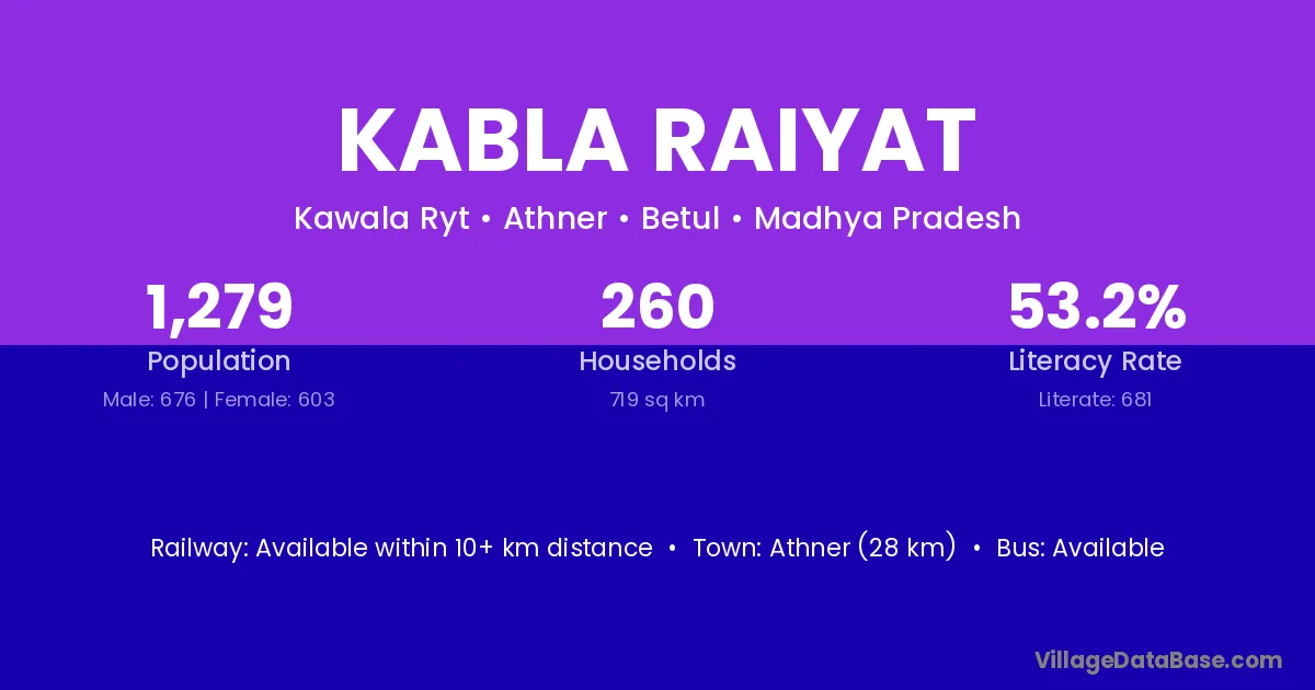 Kabla Raiyat village is located in the Athner Tehsil of the Betul district in Madhya Pradesh .